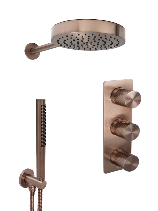 Evo 2 outlet shower valve, arm 400mm, overhead shower 250mm, round water outlet