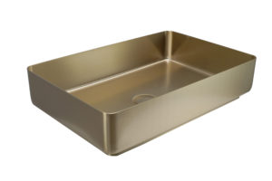 VOS Brushed Brass Grade 316 Stainless Steel Counter Top Basin with unslotted click clack waste