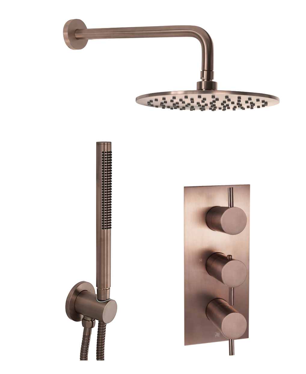 21OUTLET/BRZ Round water outlet with holder, plastic hose, and slim hand shower